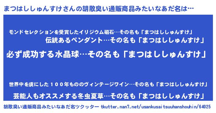 | 男性向けラノベタイトル風あだ名 | 『まつはししゅんすけの憂鬱』 |