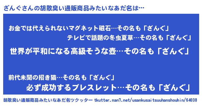 | 意味不明あだ名 | 『ざんぐフォーエバー』『ペロリンざんぐ』 |