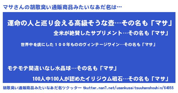 ヘコむあだ名 | 『豆乳』『マサお』『マサにゅー』 |