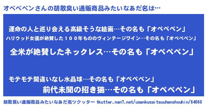 | 意味不明あだ名 | 『とにかく怪しいオペペペン』 |