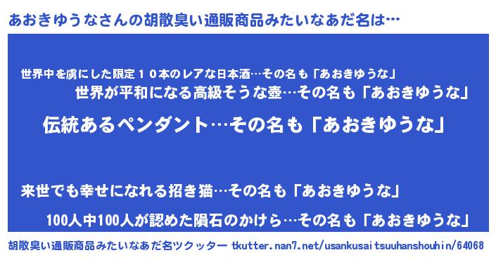 | ポケモン風あだ名 | 『ヒアオキユウナ』『メロアッオ』 |