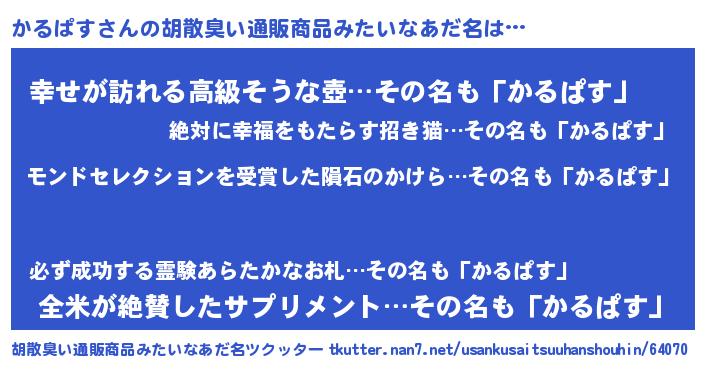 | 欧米人風あだ名 | 『ダニエルかるぱす』『ウサインかるぱす』 |