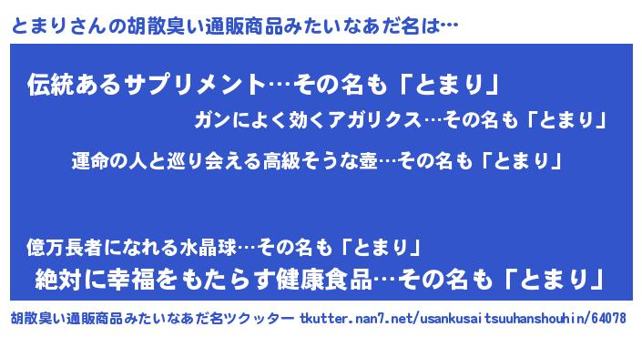 | 意味不明あだ名 | 『とまりフォーエバー』『永久保存とまり』 |