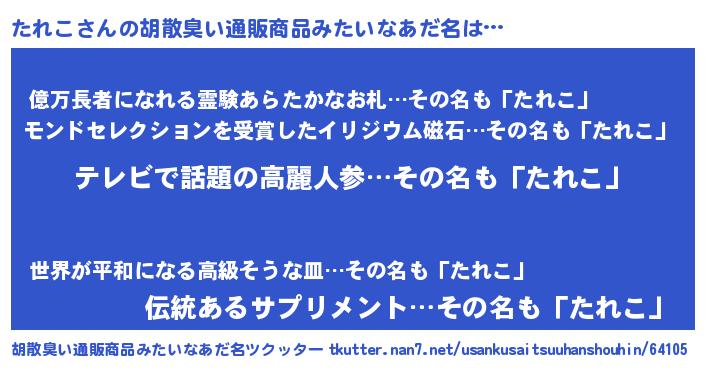 | ピコ太郎風あだ名 | 『タコ三郎』『タレ十郎』『タタ太郎』 |