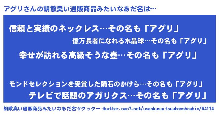 | ヘコむあだ名 | 『つくし』『アグを』『アグもー』 |