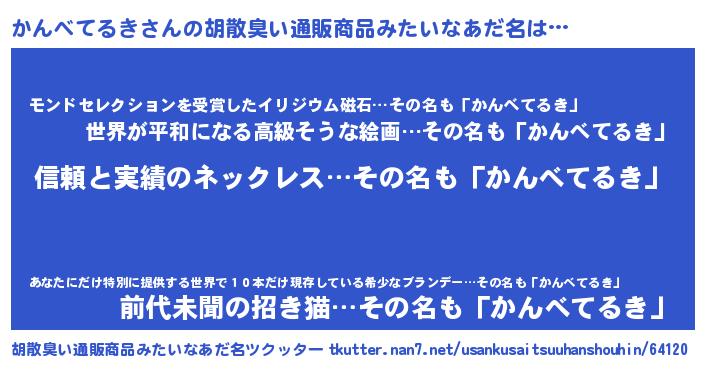 | 意味不明あだ名 | 『とにかく怪しいかんべてるき』 |