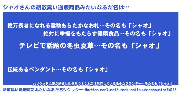 | ヘコむあだ名 | 『シャっふぃ~』『シャオ(苦笑)』 |