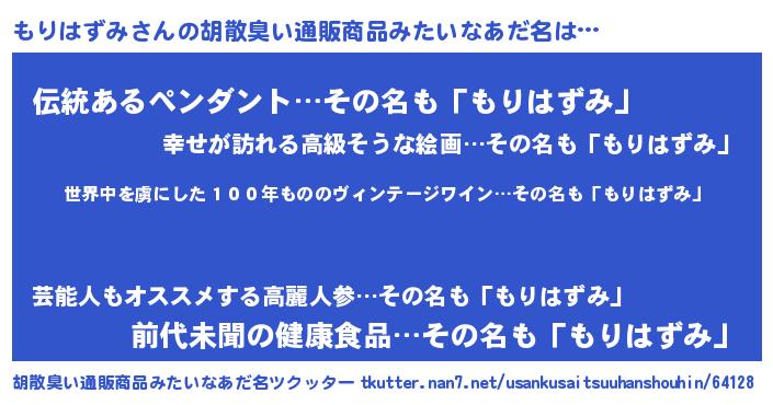 | 意味不明あだ名 | 『住所不定無職もりはずみ(8歳)』 |