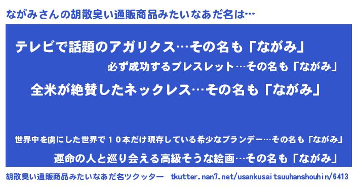 | 意味不明あだ名 | 『とにかく怪しいながみ』『自称ながみ』 |
