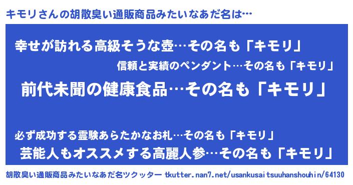 | 意味不明あだ名 | 『ニラ科キモリ属』『永久保存キモリ』 |
