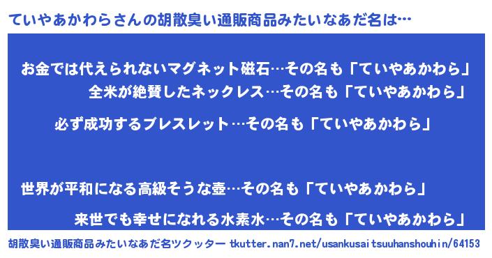 | 欧米人風あだ名 | 『トリンドルていやあかわら』 |