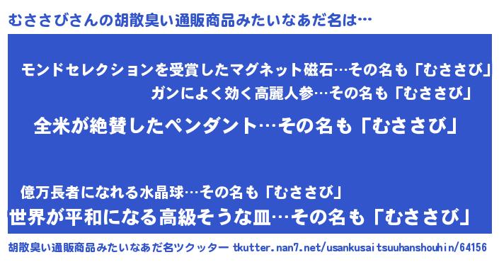 | ヘコむあだ名 | 『むさっちょ』『酢こんぶ』 |