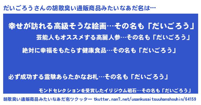 | ヘコむあだ名 | 『だいごろう(爆)』『酢こんぶ』 |