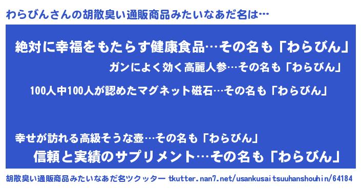 | ヘコむあだ名 | 『わらびん(笑)』『わらっ子』 |