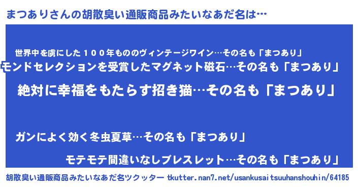 | ヘコむあだ名 | 『まつあり(笑)』『まつにー』『豆乳』 |