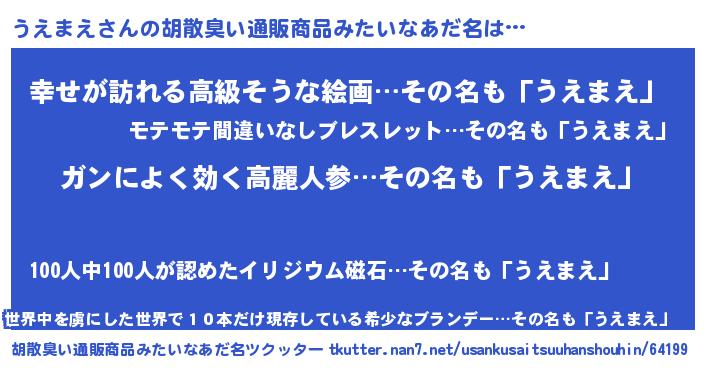 | 男性向けラノベタイトル風あだ名 | 『緋弾のウエマエ』『ウエマエスレイヤー』 |