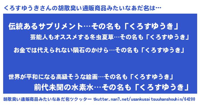 | ヘコむあだ名 | 『くろぷりん』『くろすゆうき(小並感)』 |