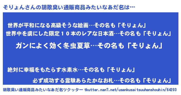 | 意味不明あだ名 | 『自称そりょん』『そりょんフォーエバー』 |