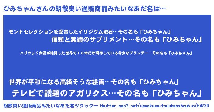 | 意味不明あだ名 | 『住所不定無職ひみちゃん(74歳)』 |