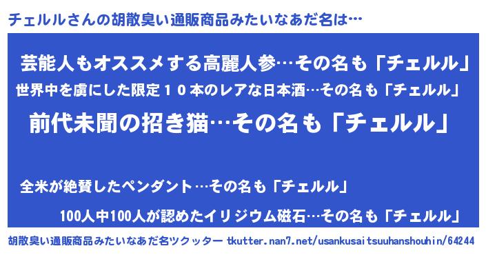 | 意味不明あだ名 | 『永久保存チェルル』『自称チェルル』 |