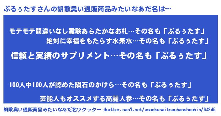 | 女子向けラノベタイトル風あだ名 | 『ぶるぅたすは平凡を望む』 |