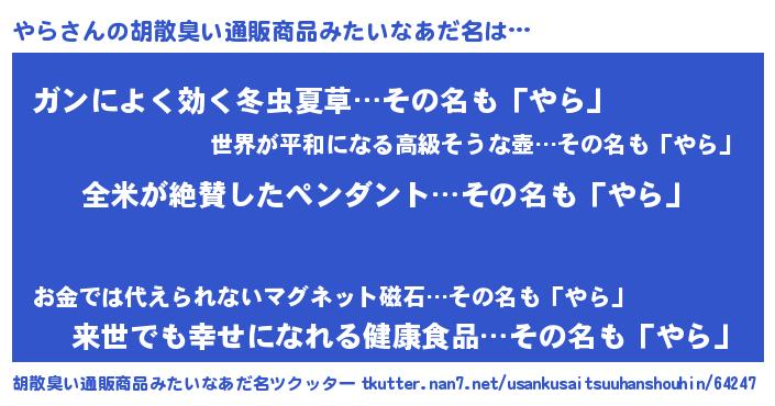 | ヘコむあだ名 | 『やらっちょ』『やら(遠い目)』 |