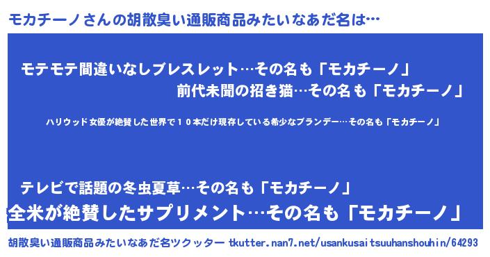 | 意味不明あだ名 | 『住所不定無職モカチーノ(86歳)』 |