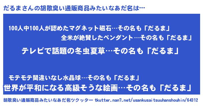 | 男性向けラノベタイトル風あだ名 | 『転生したらだるまだった件』 |