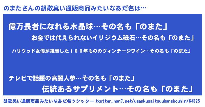 | ヒーロー風カッコイイあだ名 | 『仮面ノマダー』『スーパーノマタ』 |