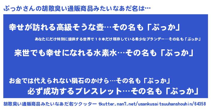 | ヘコむあだ名 | 『ぷっか(苦笑)』『つくし』 |