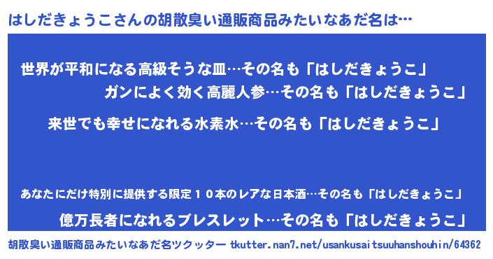 | 意味不明あだ名 | 『永久保存はしだきょうこ』 |
