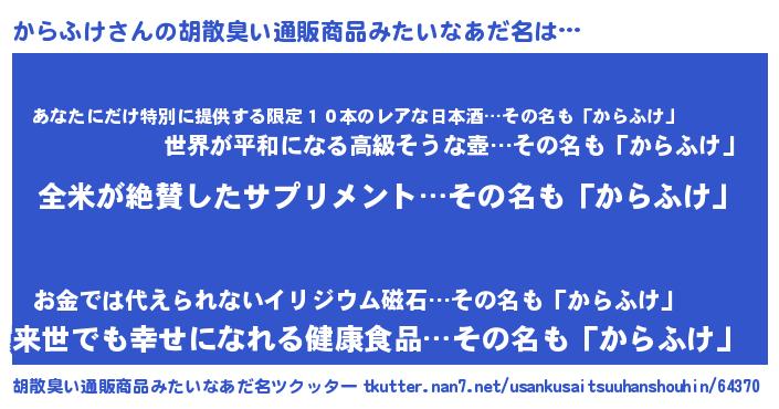 | ヘコむあだ名 | 『からを』『からふけ(爆)』『豆乳』 |