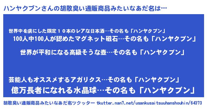 | 欧米人風あだ名 | 『ハンヤクブンクリステル』 |