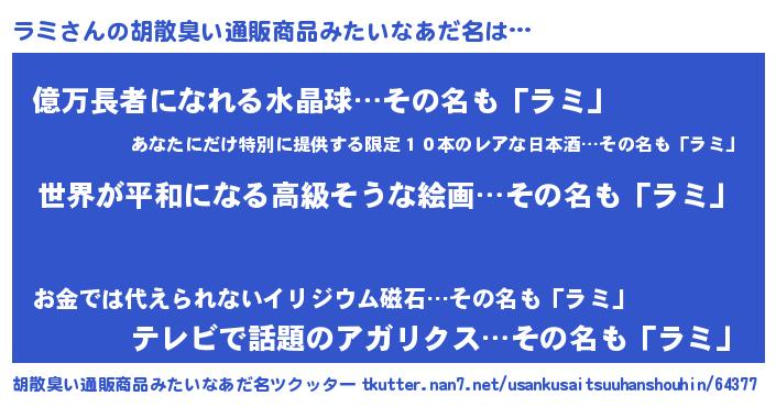 | 欧米人風あだ名 | 『ラミクリステル』『トリンドルラミ』 |