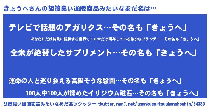 | 意味不明あだ名 | 『とにかく怪しいきょうへ』 |
