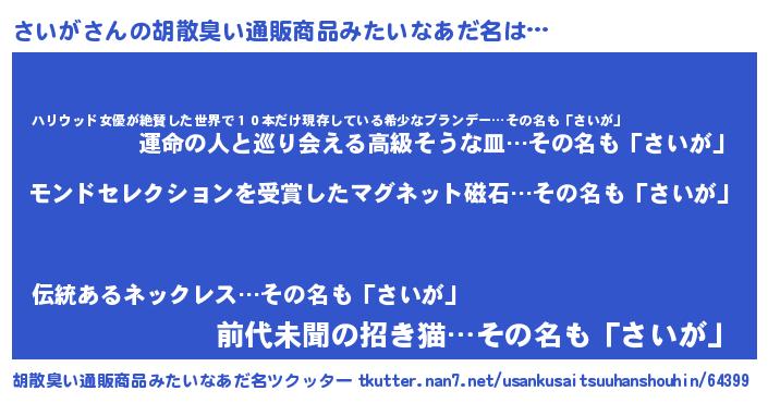 | ヘコむあだ名 | 『さいが(笑)』『つくし』『さいお』 |