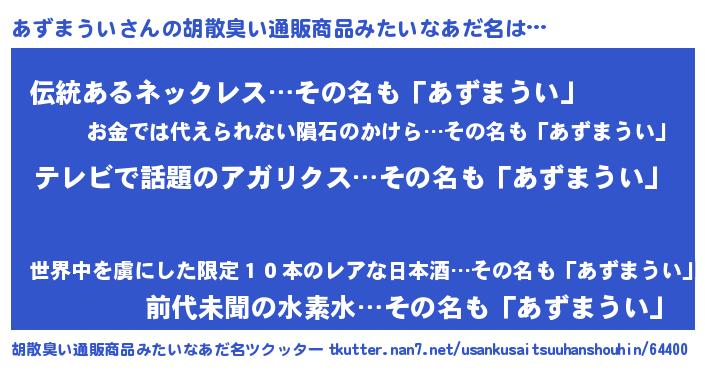 | ヘコむあだ名 | 『あずっ子』『あずまうい(笑)』 |