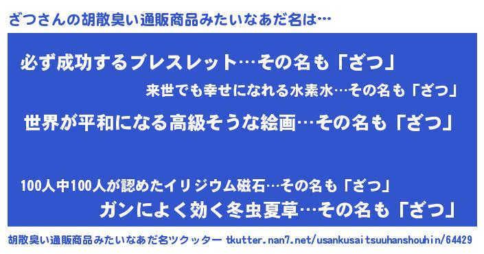 | ポケモン風あだ名 | 『ザツゴンZ』『ザツダネ』 |