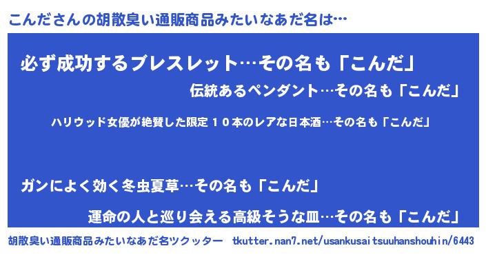 | 意味不明あだ名 | 『住所不定無職こんだ(41歳)』『自称こんだ』 |