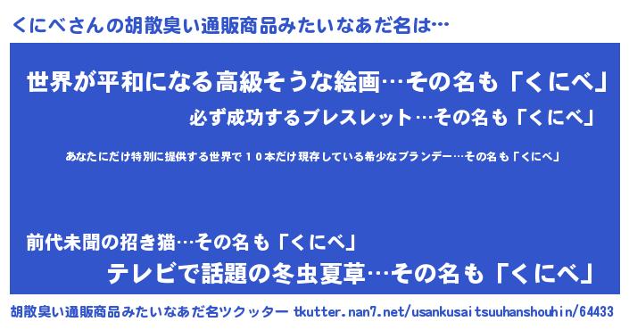 | 意味不明あだ名 | 『住所不定無職くにべ(71歳)』『自称くにべ』 |
