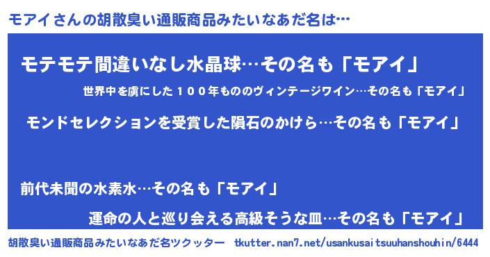 | ヒーロー風カッコイイあだ名 | 『天空の使者モアイ』『スーパーモアイ』 |