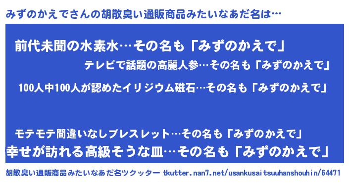| ヘコむあだ名 | 『みずのかえで(笑)』『つくし』 |