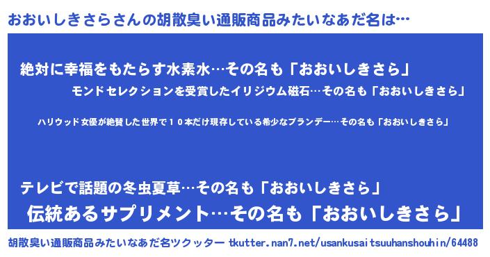 | 伝説のあだ名 | 『聞きしに勝る勇者おおいしきさら』 |