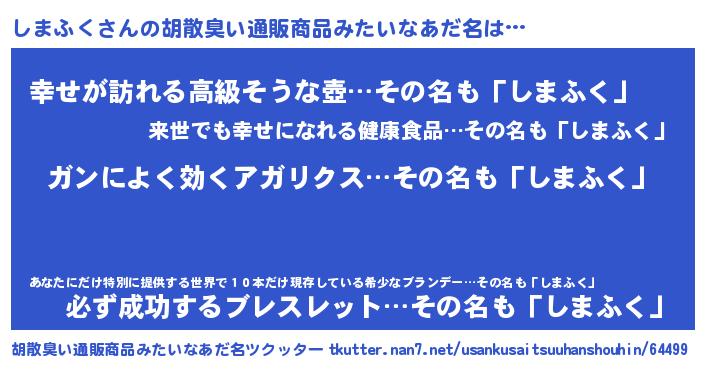しまふくさんの胡散臭い通販商品みたいなあだ名をツクッター!