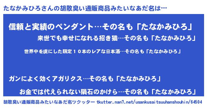 | ヘコむあだ名 | 『たなっ子』『たなかみひろ(苦笑)』 |