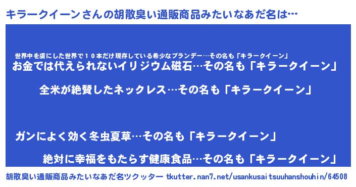 | 男性向けラノベタイトル風あだ名 | 『うちのキラークイーンが世界を掌握している!』 |
