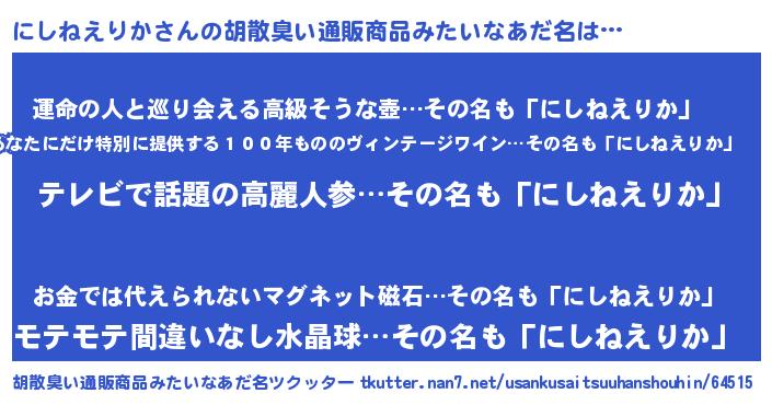 | 意味不明あだ名 | 『自称にしねえりか』 |