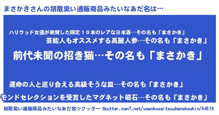 | 意味不明あだ名 | 『永久保存まさかき』『自称まさかき』 |