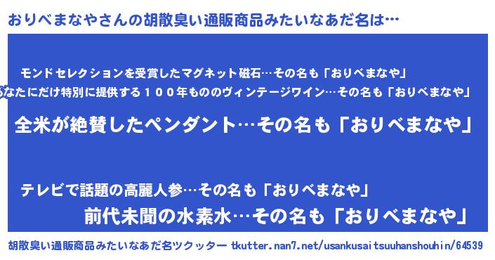 | ヘコむあだ名 | 『おりぷりん』『おりべまなや(震え声)』 |