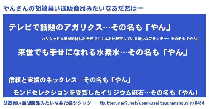 | 意味不明あだ名 | 『永久保存やん』『自称やん』 |
